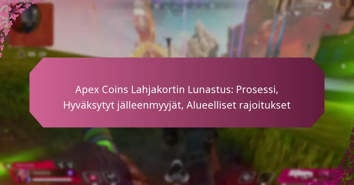 Apex Coins -lahjakorttien lunastaminen on yksinkertainen prosessi, joka mahdollistaa pelaajien muuntaa lahjakortin arvon pelin sisäiseksi valuutaksi Apex Legends -pelissä. Nämä lahjakortit, joita on saatavilla eri valtuutetuista jälleenmyyjistä, voidaan lunastaa pelin kautta tai virallisella verkkosivustolla riippuen käytetystä alustasta. On kuitenkin tärkeää huomata, että alueellisia rajoituksia saattaa olla, joten käyttäjien tulisi olla tietoisia näistä rajoituksista varmistaakseen sujuvan lunastusprosessin.